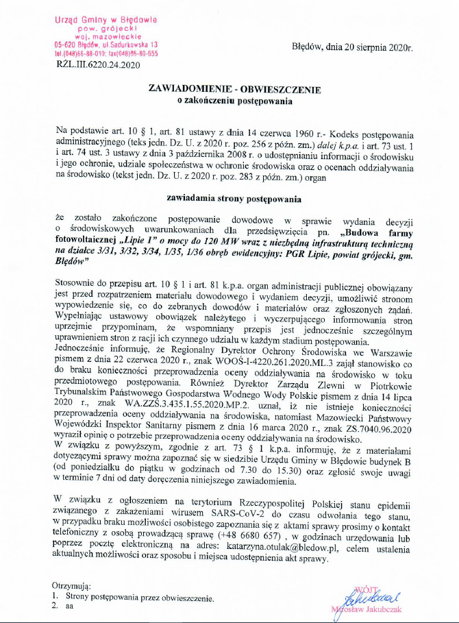 Zawiadomienie - Obwieszczenie o zakończeniu postępowania