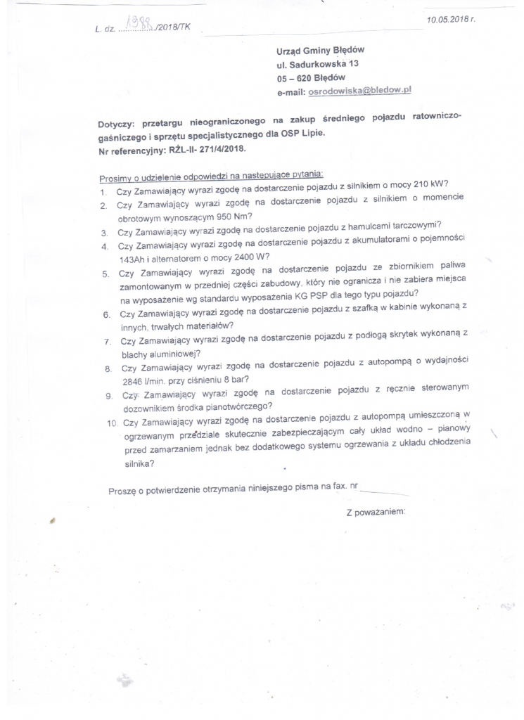 Zapytanie oferenta z dnia 10.05.2018 oraz odpowiedź