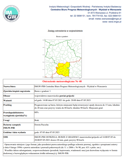Ostrzeżenie meteo - grad
