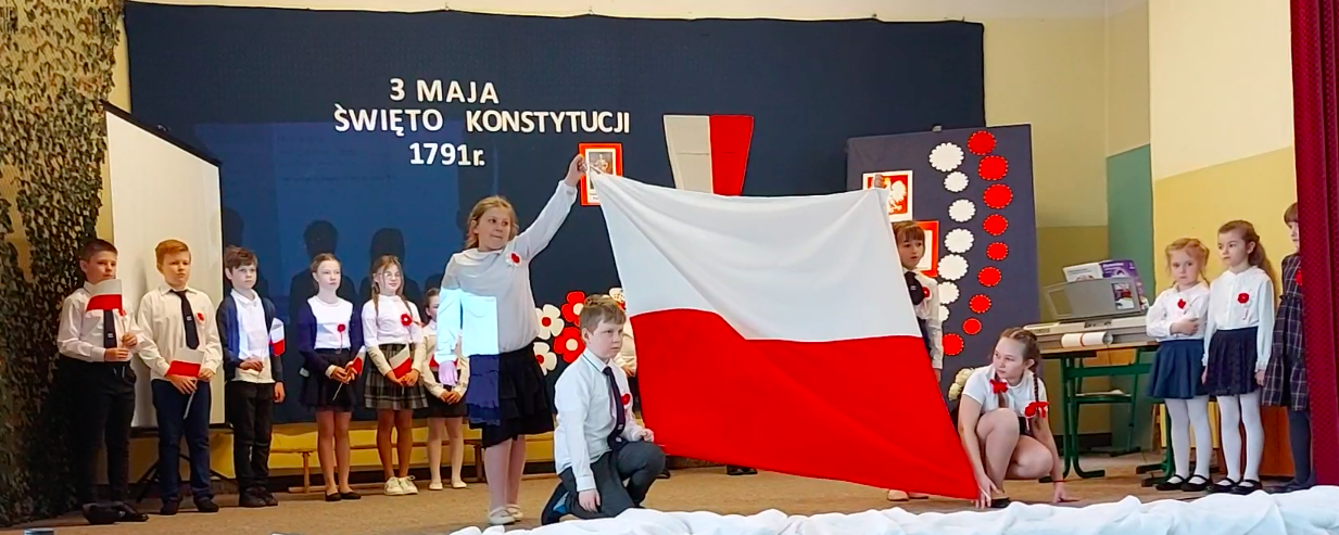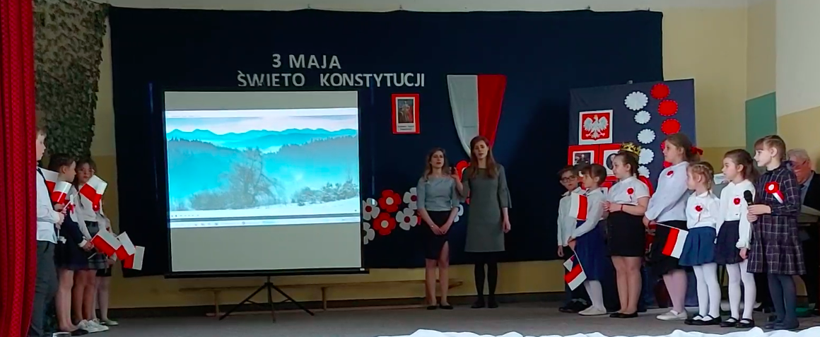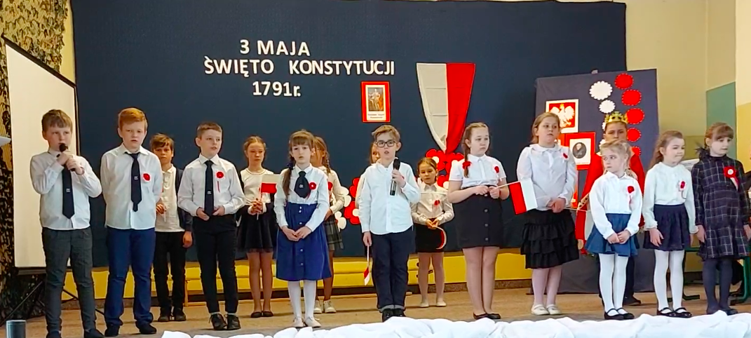 Uczniowie klas II i III oraz dzieci z przedszkola przygotowały krótką akademię. Poprzez recytację wierszy wyjaśnili, czym jest Konstytucja 3 Maja