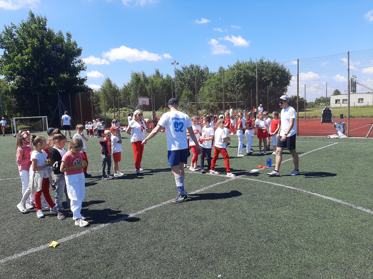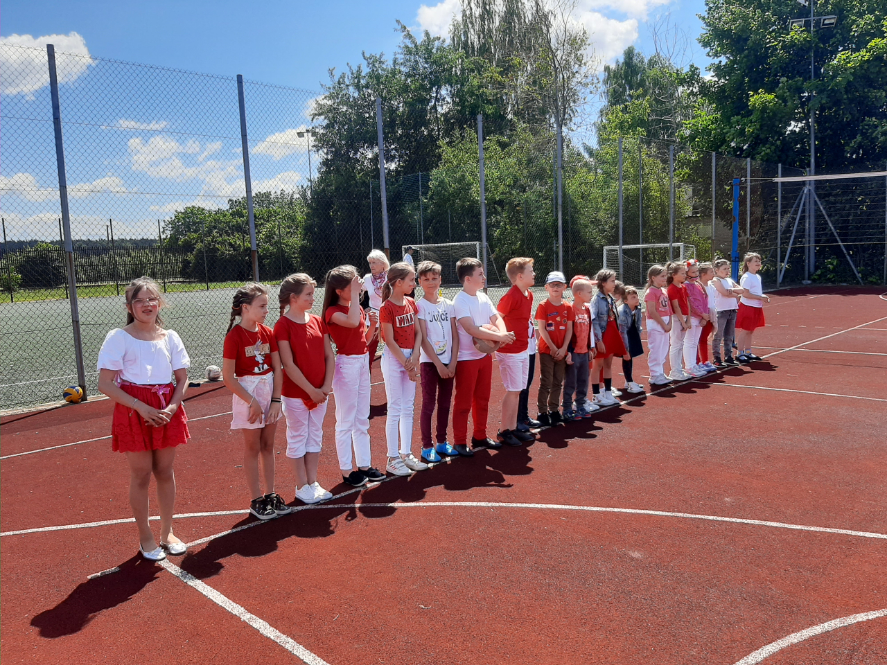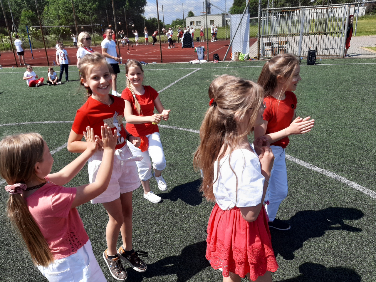 w placówce odbył się Dzień Sportu pod hasłem „Ze sportem na TY”. To ciekawe wydarzenie zbiegło się w czasie z pierwszym meczem Polaków na Euro 2020. Nauczyciele i uczniowie chcieli wesprzeć naszych piłkarzy, dlatego ubrali się w barwy narodowe.