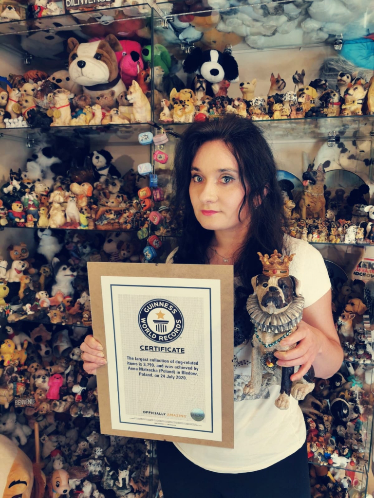 W 2014 roku postanowiła, że pokaże światu jak dużą kolekcję udało się jej zgromadzić i zgłosiła swoją chęć bicia Światowego Rekordu Guinnessa. Dokładnie 6 lipca 2014 roku podczas Pikniku w Błędowie ustanowiła swój pierwszy rekord i została wpisana do Księgi Światowych Rekordów Guinnessa liczbą 1401 sztuk w kategorii : „Największa kolekcja przedmiotów związanych z psami” a kolekcja wciąż się powiększała. Rekordem cieszyła się aż do 2019 roku, kiedy to został pobity przez inną miłośniczkę psów mieszkającą w Dubaju ilością 1496 sztuk.