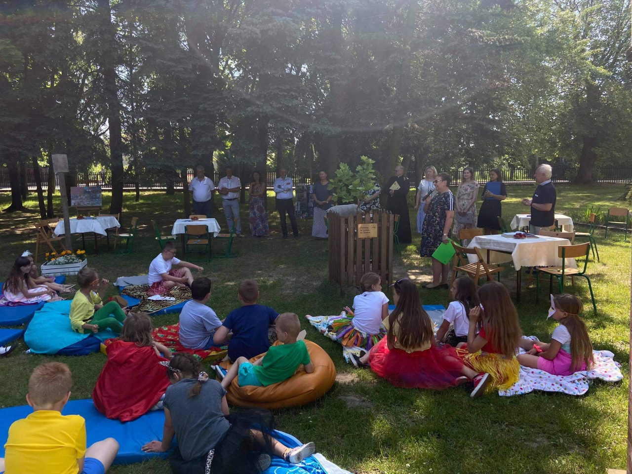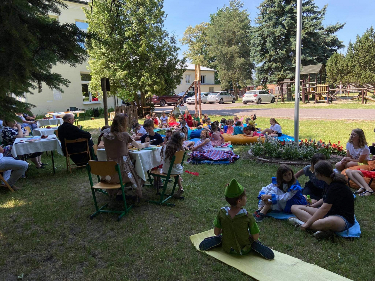 Podczas pikniku była też okazja do zatańczenia wspólnego tańca, obejrzenia filmu „Szewczyk Dratewka”, nagranego przez klasę III, obejrzenia filmiku z realizacji pierwszego modułu projektu przez klasę I. W cieniu drzew zostały ustawione zdjęcia z całego roku szkolnego, na których widać, jak świetnie bawiły się dzieci z klas I i III podczas wykonywania różnych zadań w ramach innowacji pedagogicznej „Czytam z klasą. Lekturki spod chmurki”. Dużym zainteresowaniem cieszyła się fotoramka, stworzona specjalnie na to przedsięwzięcie, a także pamiątkowa księga gości.