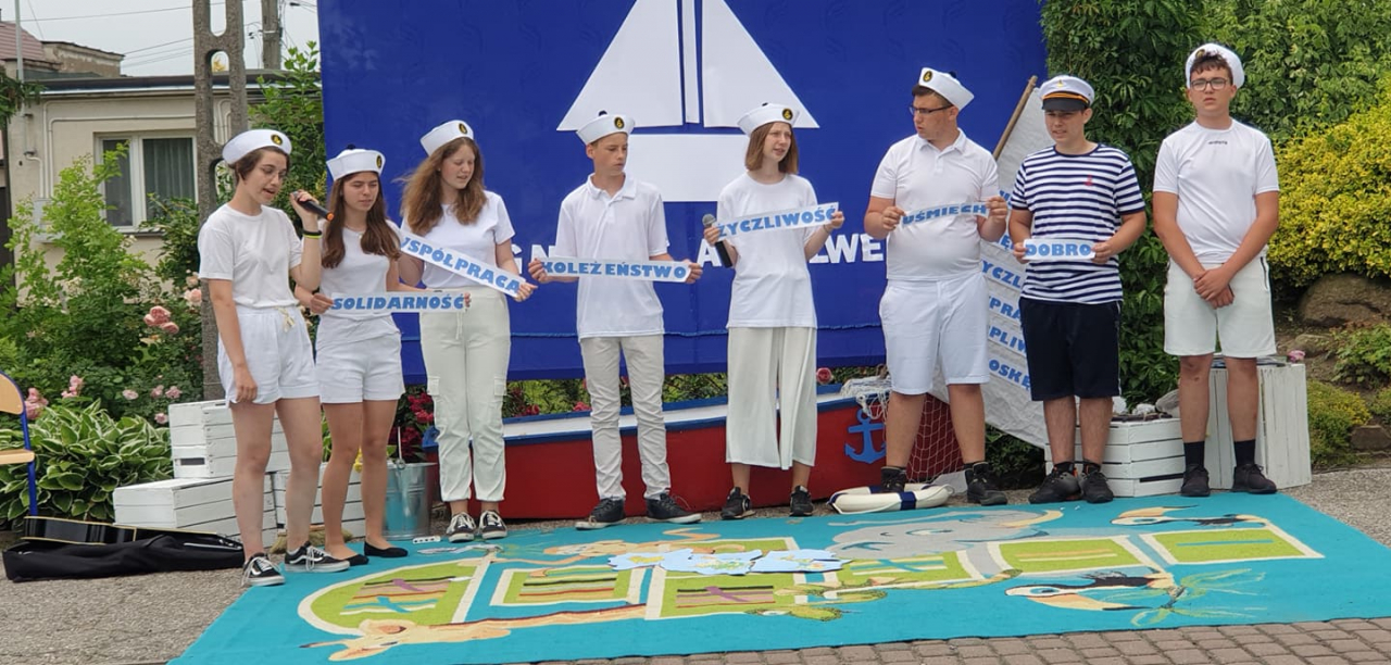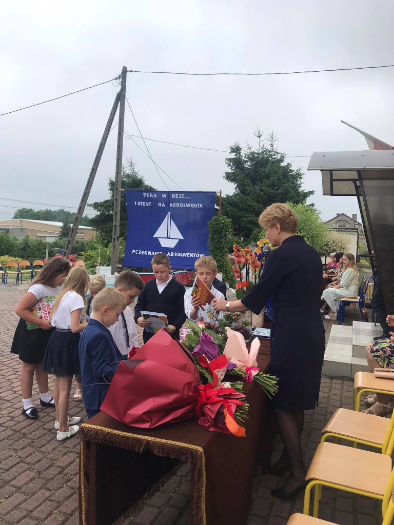 W dniu 25 czerwca 2021 r. w naszej szkole odbyło się uroczyste zakończenie roku szkolnego, które rozpoczęło się od wprowadzenia sztandaru i odśpiewania naszego hymnu narodowego.