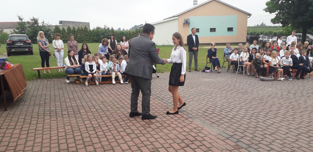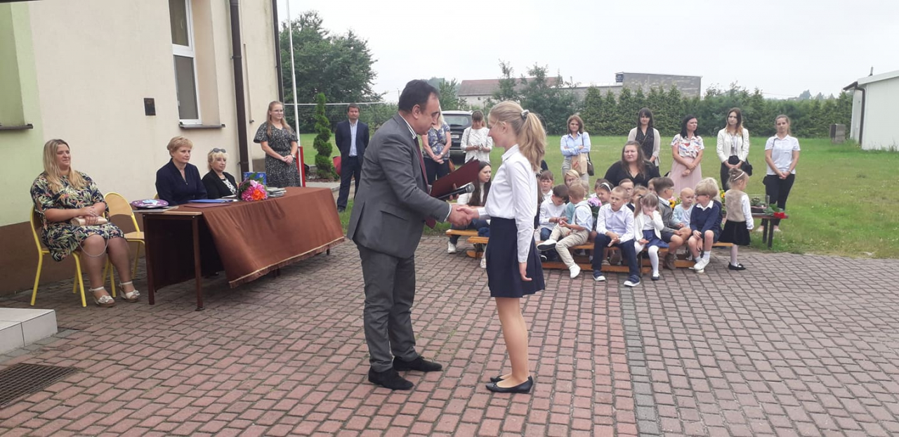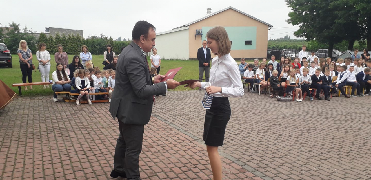 Na zakończenie roku szkolnego przybył również wójt gminy Błędów – Mirosław Jakubczak, który przekazał najlepszym uczniom stypendium gminne. Takie stypendium otrzymali: