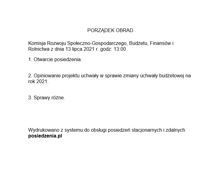 Komisja Rozwoju Społeczno-Gospodarczego, Budżetu, Finansów i Rolnictwa z dnia 13 lipca 2021 r. godz: 13:00