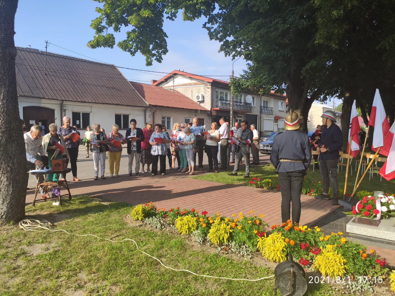 O godz.  17 przy Pomniku Pamięci Narodowej mieszkańcy Gminy Błędów wraz z Wójtem Mirosławem Jakubczakiem  oddali hołd Powstańcom warszawskim. Prowadzący uroczystość Włodzimierz Malczewski odczytał on apel pamięci. Zawyła syrena strażacka, a strażackie samochody bojowe dały sygnały dźwiękowe i świetlne. Strażacy odpalili race przy pomniku, zapłonął ogień pamięci.