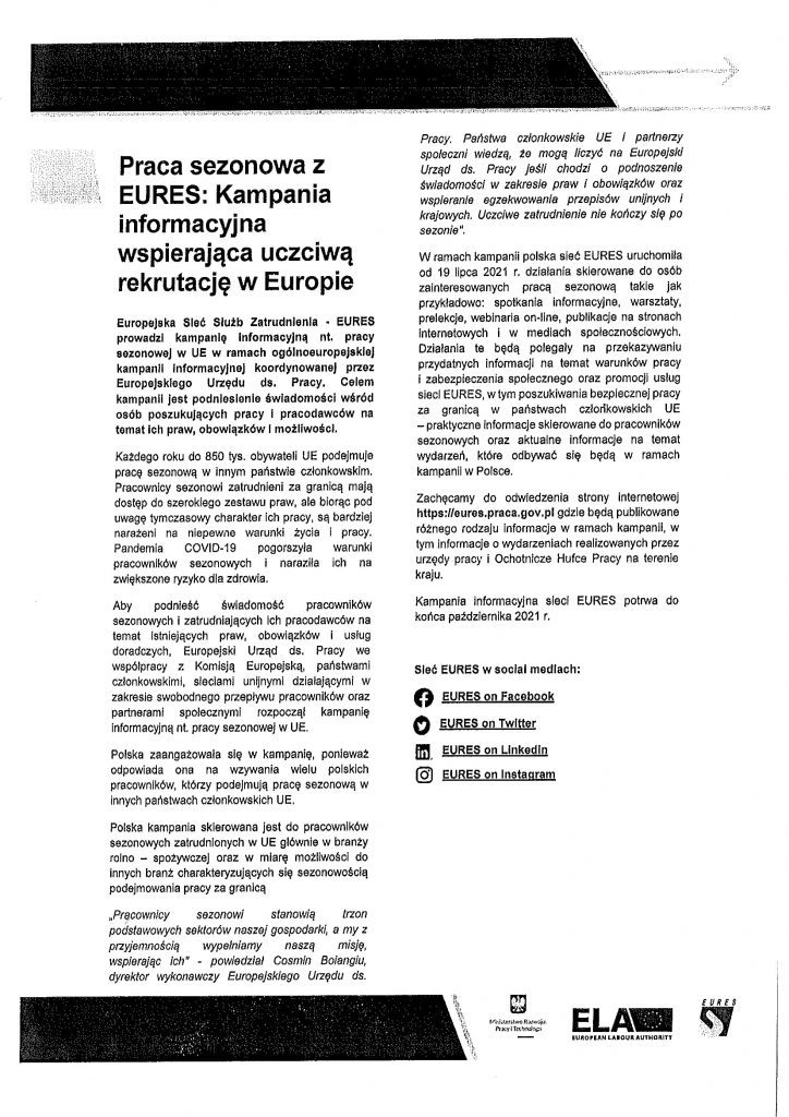 Prawa pracowników sezonowych w UE - kampania informacyjna