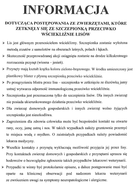 Akcja szczepienia doustnego lisów wolno żyjących przeciwko wściekliźnie