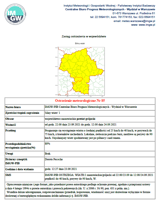 Ostrzeżenie meteo - silny wiatr