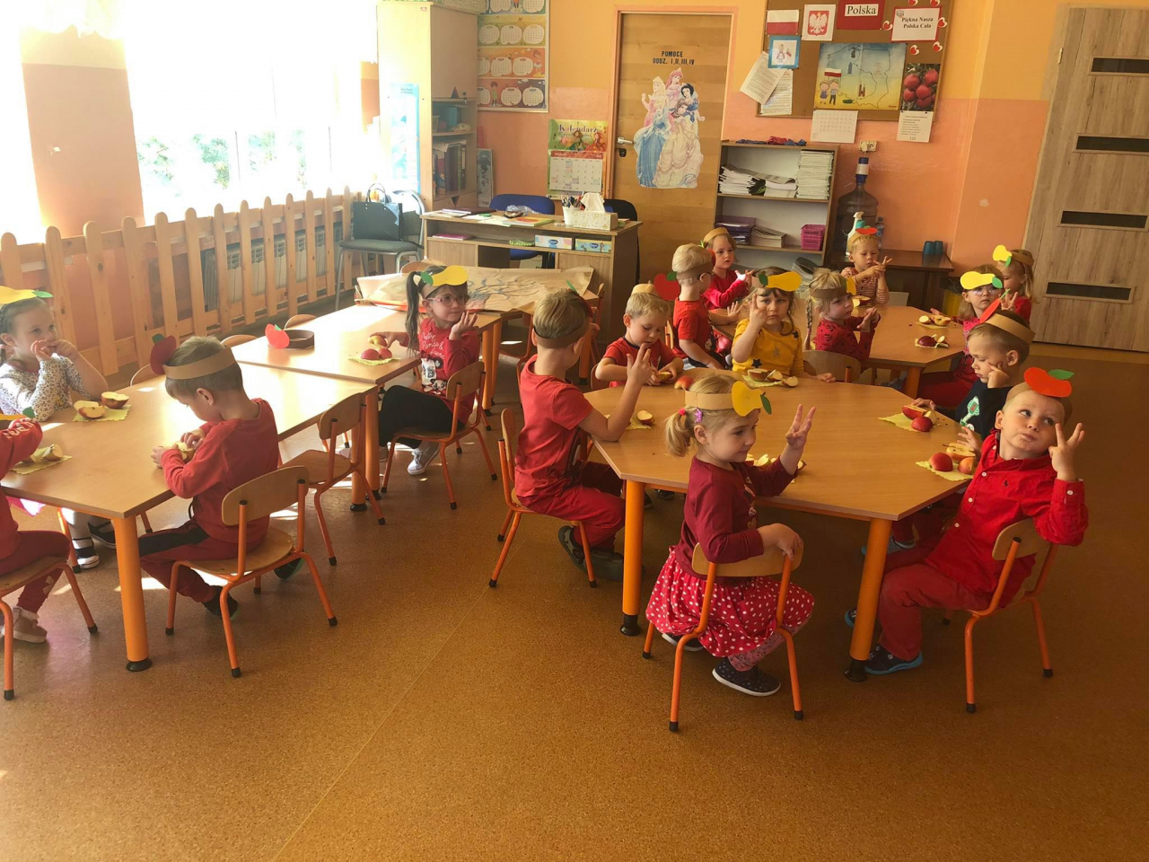 Dnia 28.09.2021 w Przedszkolu Samorządowym w Błędowie obchodziliśmy zgodnie z kalendarzem Światowy Dzień Jabłka. Dzień ten był niezwykle ważny dla naszej społeczności ze względu na położenie przedszkola w sercu zagłębia sadowniczego. Przedszkolaki w swoich grupach poszerzały wiedzę o jabłkach i ich odmianach. Rozmawiały też o tym, co możemy przygotować z tych owoców, a dzieci z oddziału II pod opieką pani Eli i pani Moniki przygotowały sok. Wszystkie zabawy tego dnia związane były z tematyką jabłkową – były piosenki, tańce, prace plastyczne, działania matematyczne, zabawy ruchowe oraz inne ciekawe aktywności. Tego dnia realizowaliśmy też zadania wynikające z naszego udziału w Międzynarodowym Projekcie „Piękna Nasza Polska Cała”. Między innymi dzieci