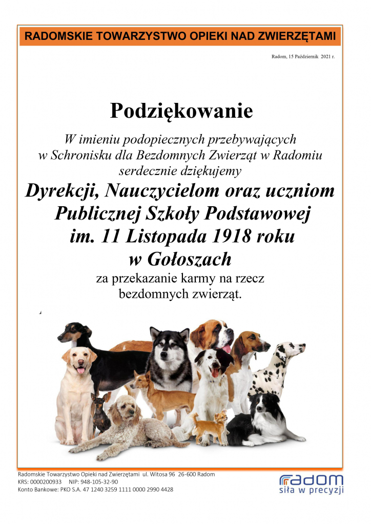 Samorząd SU oraz Radomskie Towarzystwo Opieki nad Zwierzętami wszystkim serdecznie dziękują za aktywny udział w akcji i bezinteresowną pomoc dla czworonogów.