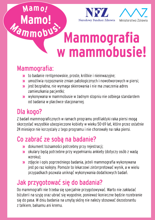 Zapraszamy na badanie mammograficzne
