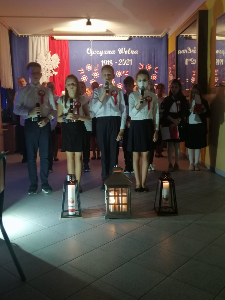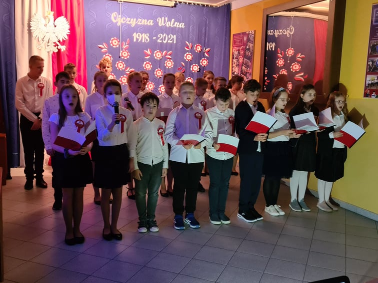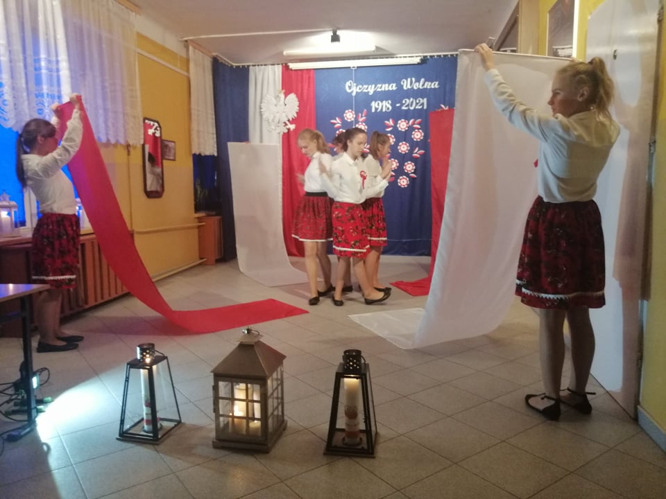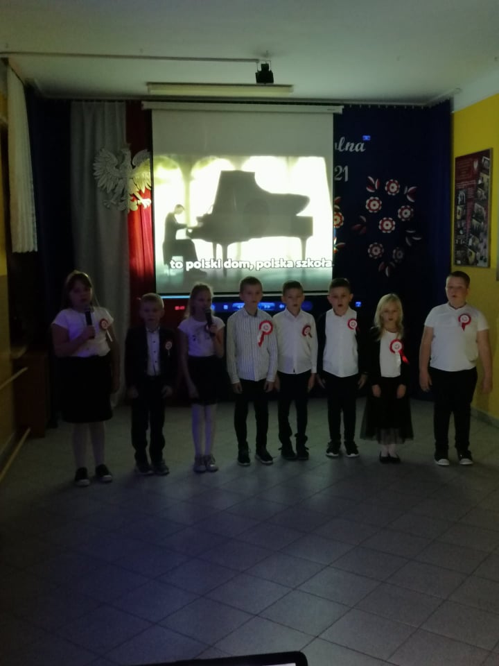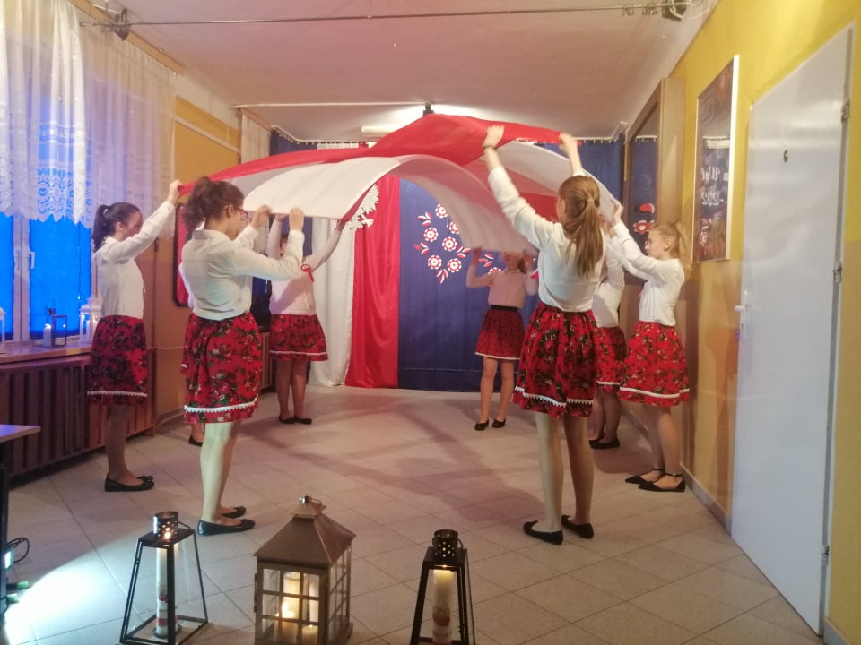 Recytowane przez uczniów wiersze o Ojczyźnie wzbogacono piękną muzyką, która wpłynęła na wyjątkowy nastrój i emocje. Punktem kulminacyjnym występu był taniec uczennic z szarfami w barwach narodowych. Występ uczniów dostarczył widzom wielu wzruszeń  i skłonił do refleksji.