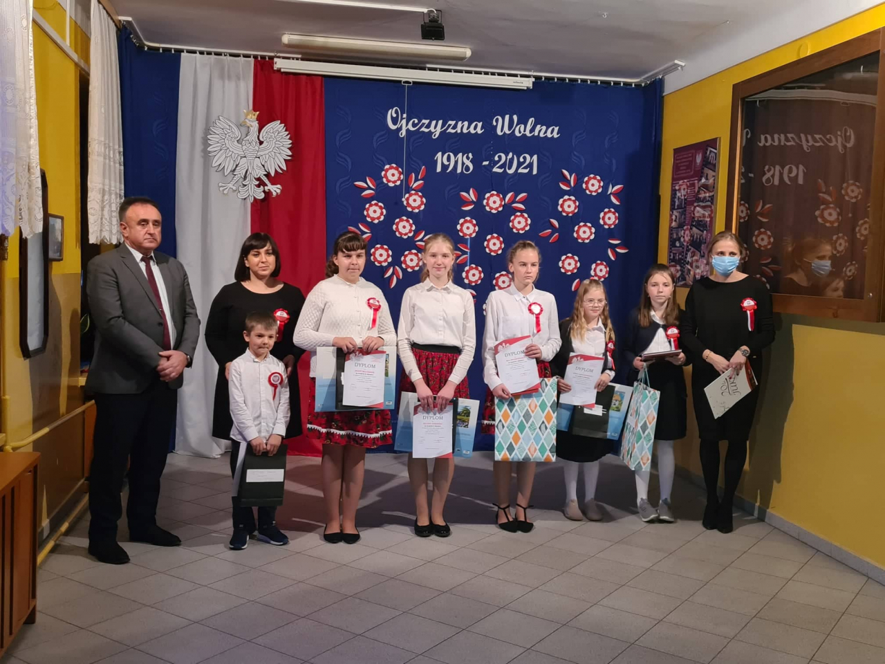 Podczas uroczystości podano też wyniki gminnego konkursu „Gdy myślę, Polska- Orzeł Biały- nasza duma”. Głównym sponsorem konkursu był Urząd Gminy Błędów.