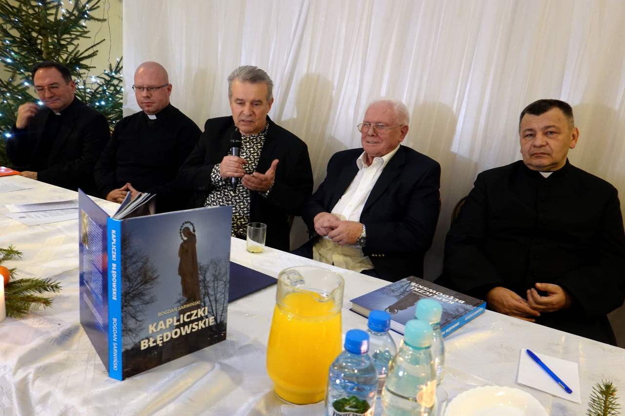 Licznie przybyłych mieszkańców i gości z zewnątrz przywitał  wójt gminy Błędów Mirosław Jakubczak. Spotkanie prowadził znany regionalista, autor ponad 30 książek Andrzej Zygmunt Rola-Stężycki. Przedstawił on sylwetkę fotografika Bogdana Sarwińskiego oraz swoje refleksje dotyczące sytuacji i roli twórcy we współczesnych realiach.  Podkreślił znaczenie, niedocenianych zazwyczaj twórców i artystów regionalnych. Głos zabierali m.in. ks. Piotr Kodym, wikariusz parafii błędowskiej w latach 2010-2013, następnie o. Andrzej Majewski, szef Redakcji Katolickich Polskiego Radia. Wszyscy z nich napisali teksty dotyczące kapliczek, zamieszczone w albumie. Za wydanie tego albumu podziękował autorowi też ks. proboszcz Leszek Bruliński.