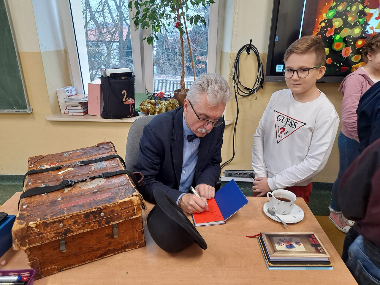 Wcześniej – 9 grudnia 2021 r. również w ramach programu czytelniczego odbyło się spotkanie z autorem książek dla czytelników nieco starszych – Wojciechem Widłakiem. W tym spotkaniu uczestniczyli uczniowie z klas IV, V, i VI