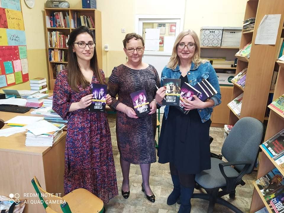 Na koniec odbyło się losowanie, pisarka podarowała wylosowanym uczniom książki swojej przyjaciółki Katarzyny Gacek oraz rozdała słodycze. Zasoby naszej biblioteki również powiększyły się o kilka pozycji autorstwa Elizy Korpalskiej (,,Niewinność Lukrecji”/ ,,Reguła Lukrecji”/,,Vandetta Lukrecji”). W podziękowaniu za miłe spotkanie pisarka otrzymała piękną ręcznie robioną kartę oraz nasze grójeckie jabłka.