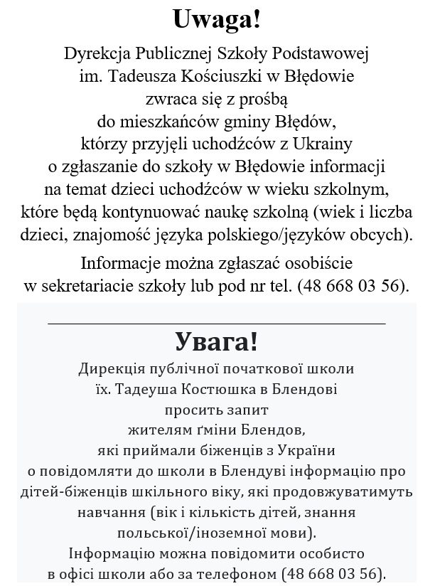 Komunikat do mieszkańców gminy Błędów, którzy przyjęli uchodźców z Ukrainy