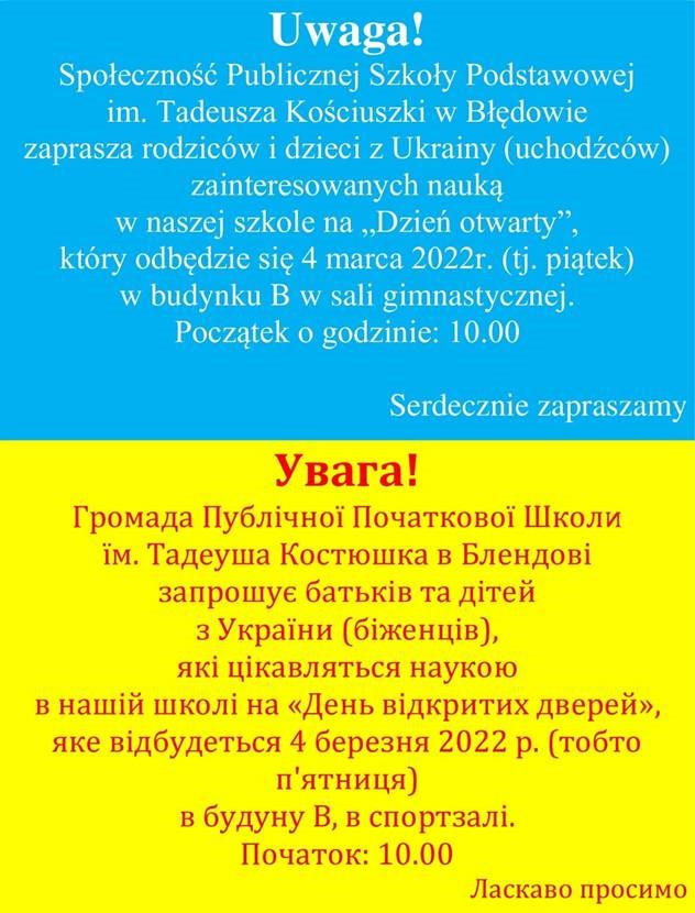 Spotkanie dla rodziców i dzieci z Ukrainy (uchodźców) zainteresowanych nauką w szkole