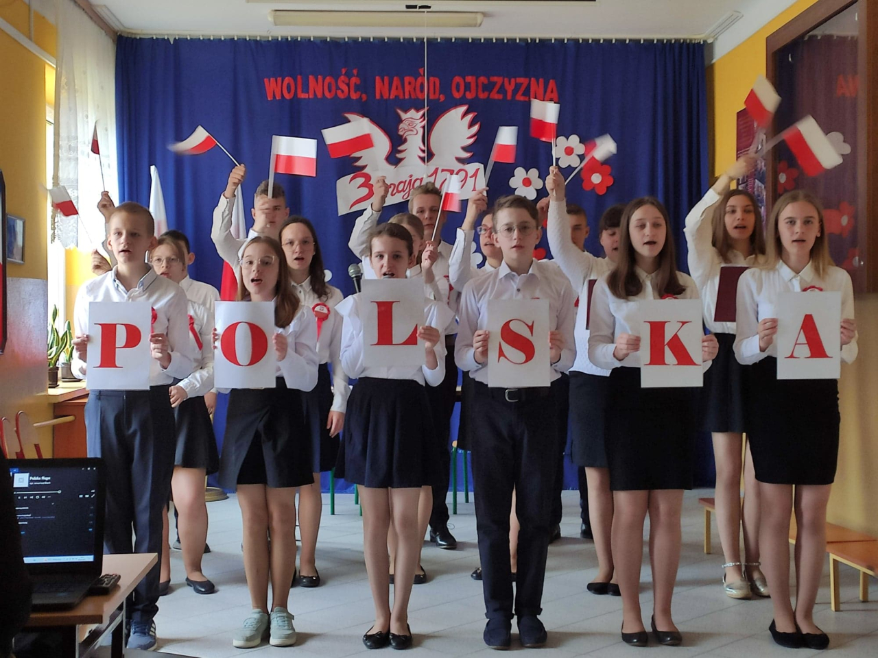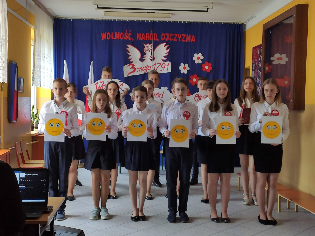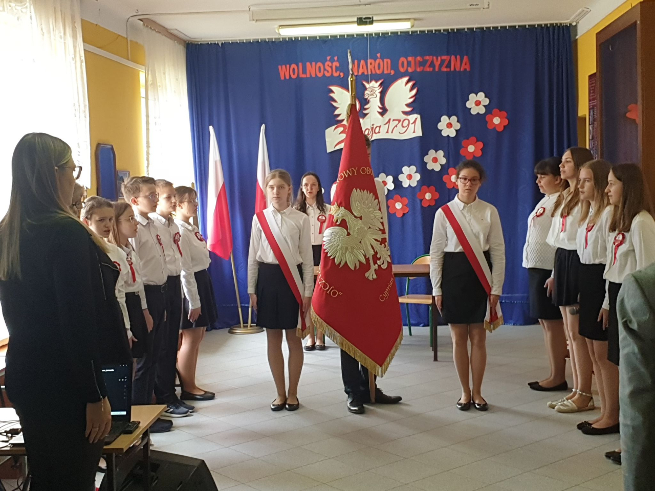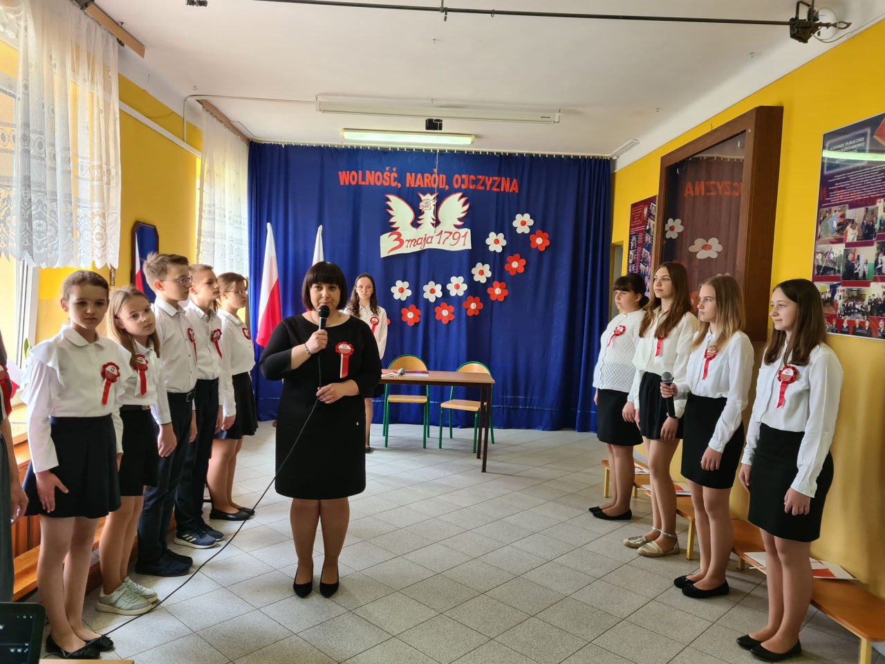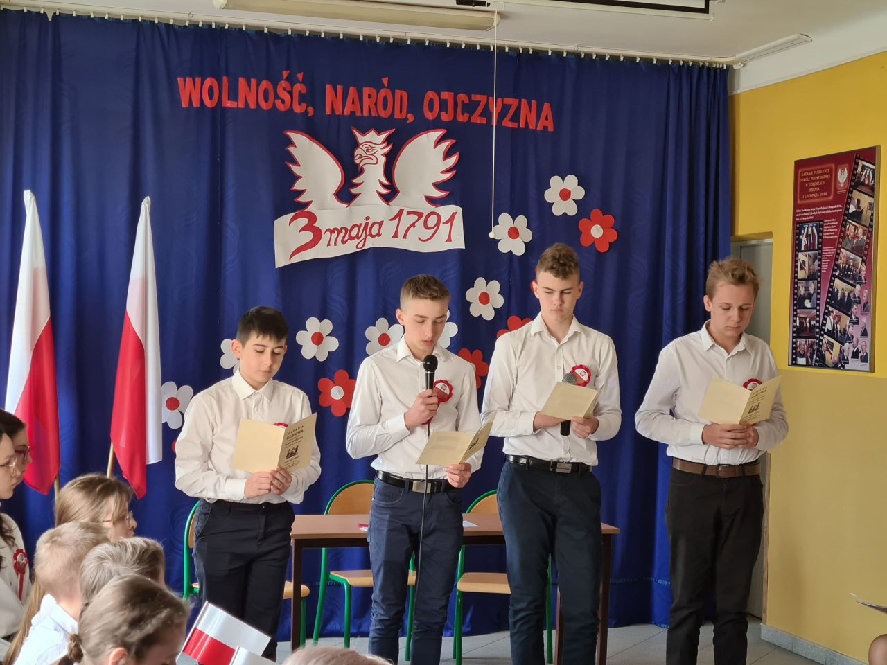 Młodzież kl. VI- VIII w formie sejmiku uczniowskiego przypominała zebranym okoliczności i założenia ważnej dla ówczesnej Polski ustawy rządowej z 1791r. Tę nietypową lekcję historii uatrakcyjniały różne rekwizyty oraz stosowne do tematyki piosenki patriotyczne, a także okolicznościowa scenografia.