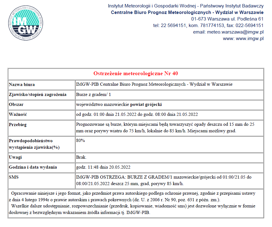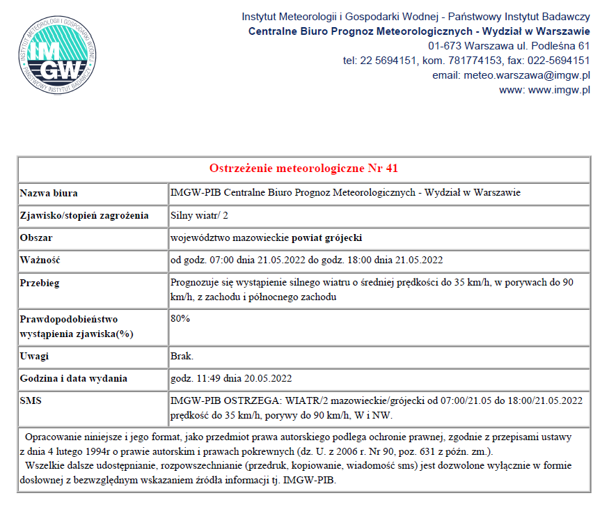 Ostrzeżenie meteo - silny wiatr i burze z gradem