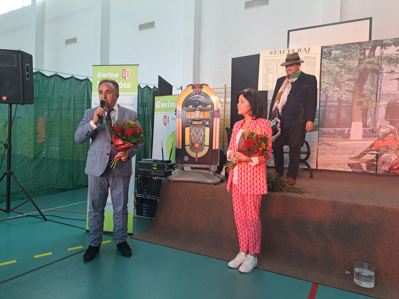Niejeden mieszkaniec Gminy Błędów rozwijał swoje pasje artystyczne pod okiem reżysera spektaklu Grzegorza Rejera, m.in. występujące Panie: Barbara Kloch oraz Natalia Napiórkowska. Obecna była również Dyrektor Grójeckiego Domu Kultury Monika Woźniak, która również złożyła życzenia wszystkim Mamom i wręczyła symboliczna różę.