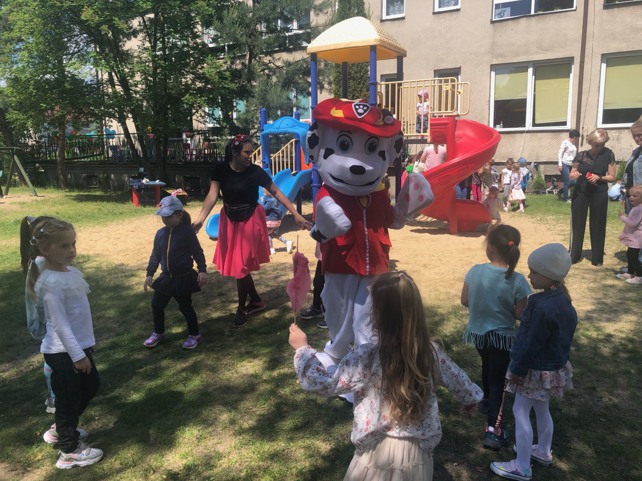 Dzień Dziecka to święto, które uwielbiają wszystkie dzieci. W tym roku obchody rozpoczęliśmy już 31.05. Był to bardzo wyjątkowy dzień dla naszych przedszkolaków - pełen uśmiechów i niespodzianek. Od rana panowała radosna atmosfera, a na dzieci czekało dużo atrakcji. Były wspólne zabawy, tańce,  gry zespołowe prowadzone przez Panie animatorki oraz słodki poczęstunek przygotowany przez rodziców. Dużą niespodzianką okazała się wizyta maskotki Marshalla z Psiego Patrolu.  Dzieci były zachwycone. Mamy nadzieję, że ten dzień  będzie mile wspominany przez nasze przedszkolaki.