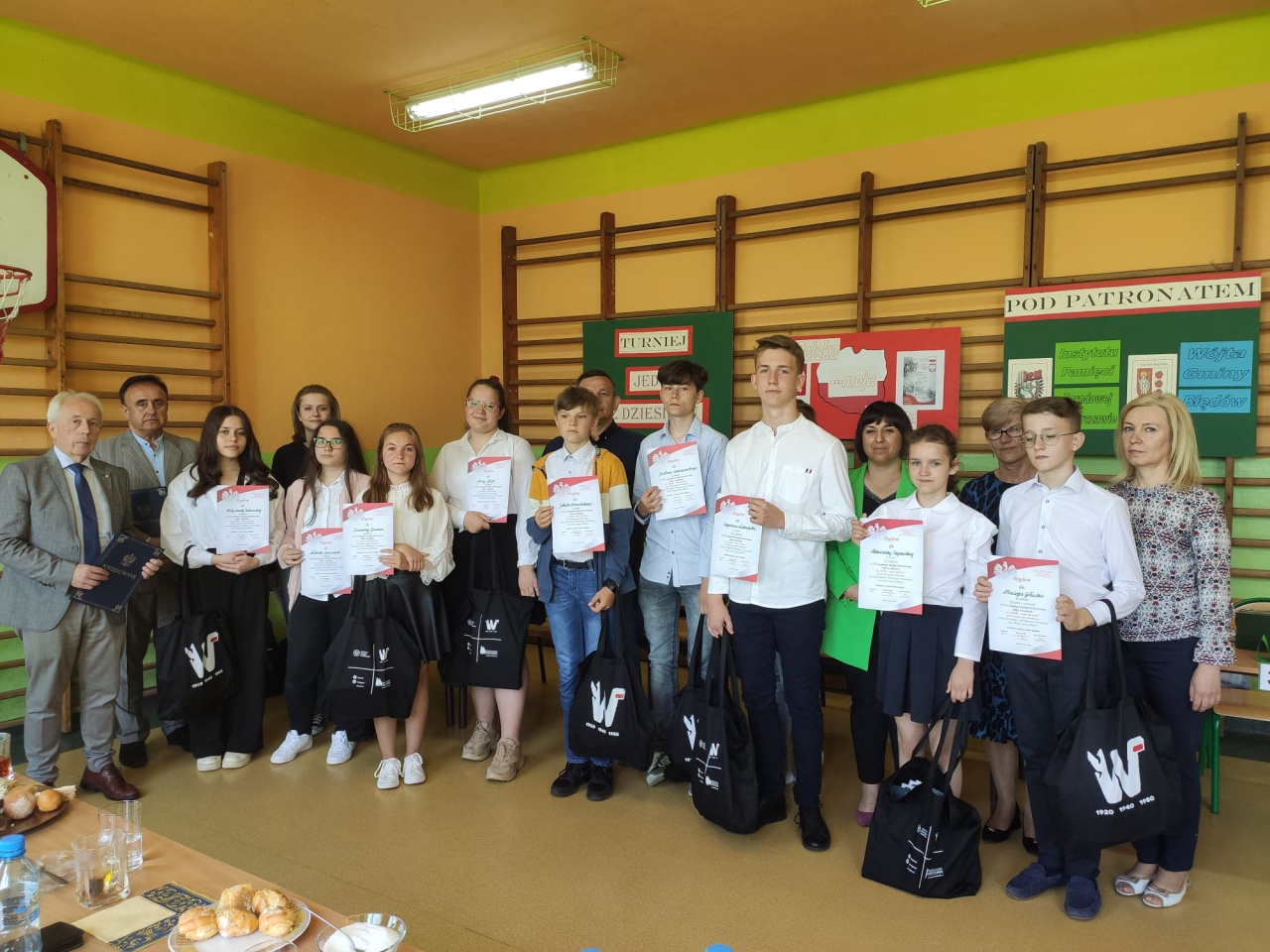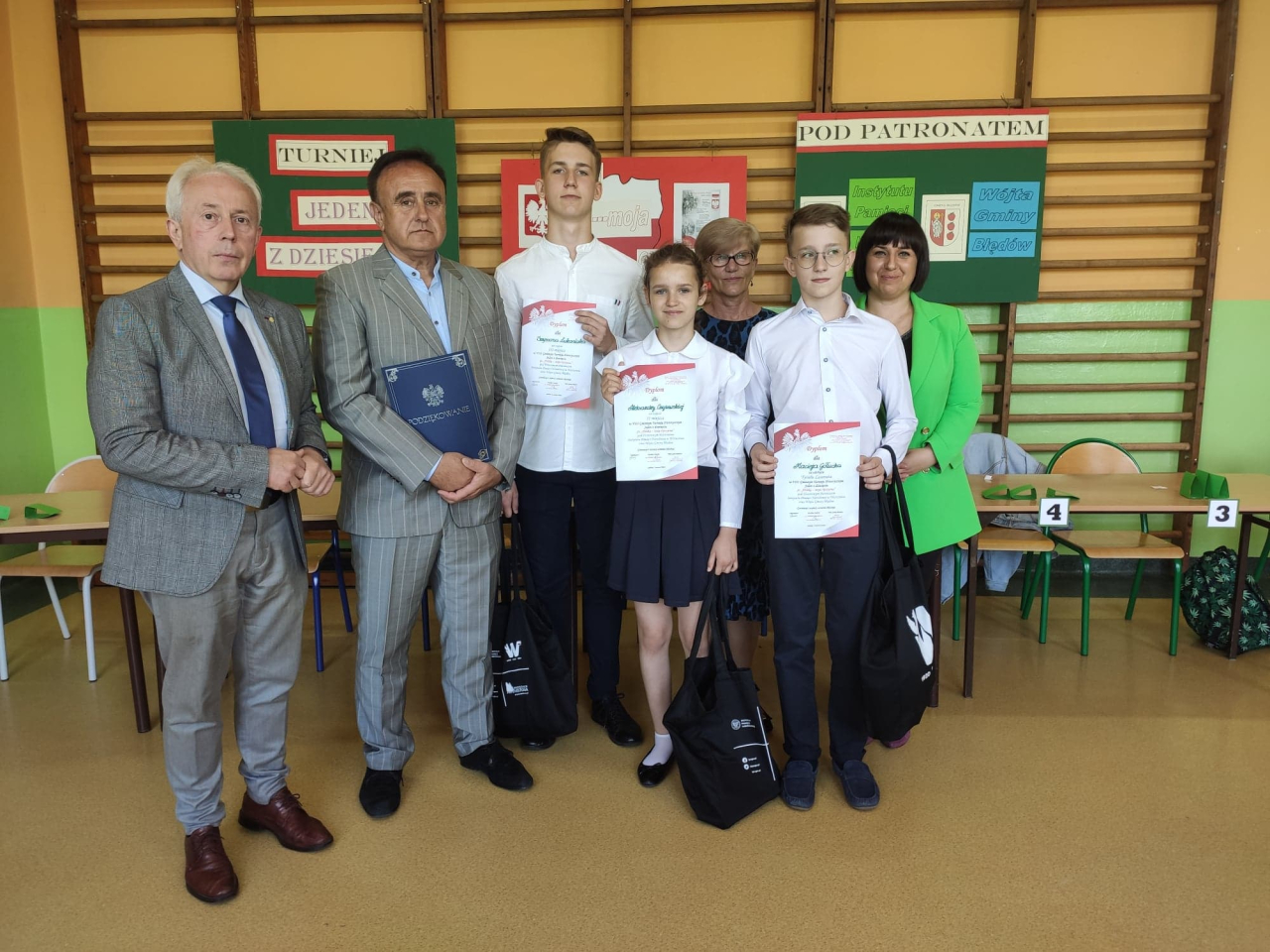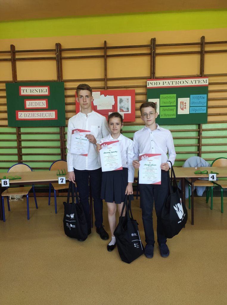 Według opinii członków Komisji i zaproszonych Gości uczestnicy prezentowali bardzo wysoki poziom wiedzy, zatem każdy z nich mógł czuć się zwycięzcą. Wszyscy uczniowie otrzymali nagrody rzeczowe i książkowe, pamiątkowe dyplomy oraz gadżety ufundowane przez Honorowych Patronów – Instytut Pamięci Narodowej w Warszawie i Wójta Gminy Błędów, które z przyjemnością wręczyli znamienici Goście wspólnie z dyrektor szkoły Agnieszką Sikorską. Dodatkowo zwycięzcy zostali obdarowani bonami upominkowymi przekazanymi przez Pana Wójta Mirosława Jakubczaka. Nie zabrakło też podziękowań dla nauczycieli przygotowujących uczniów do tego prestiżowego turnieju wiedzy historycznej.