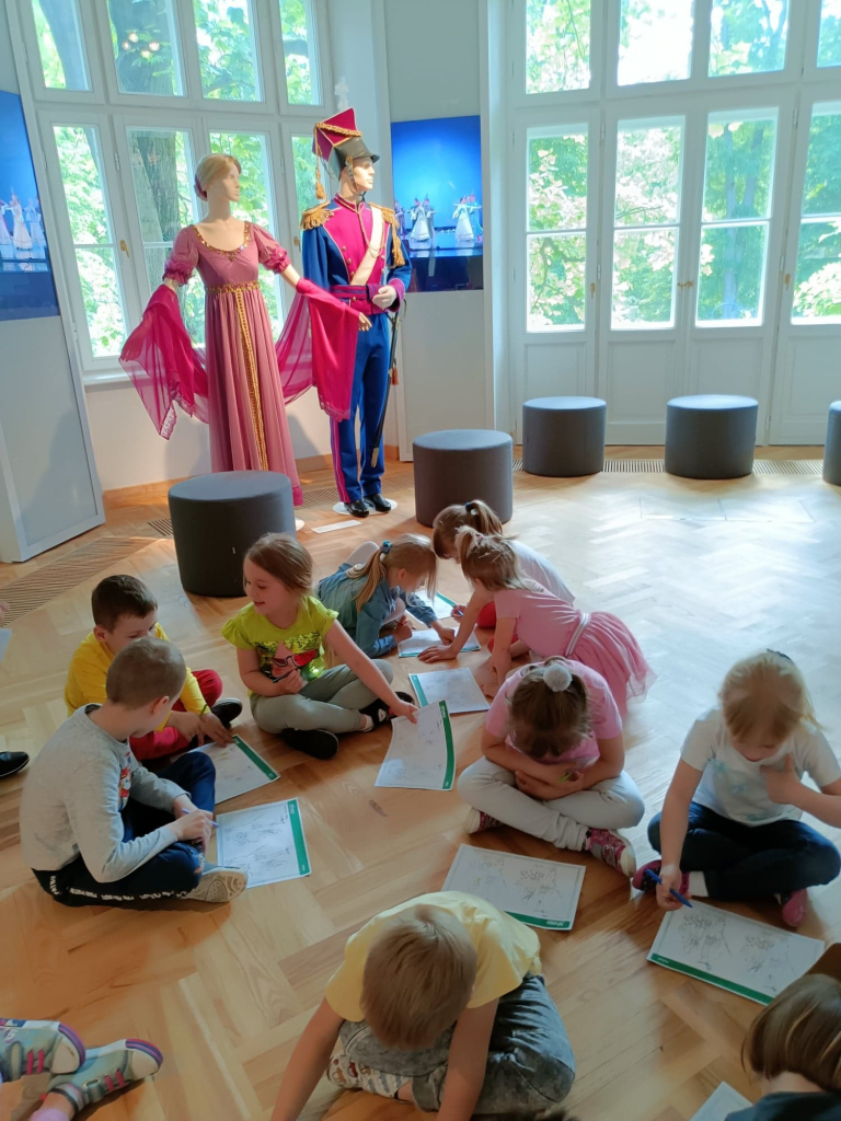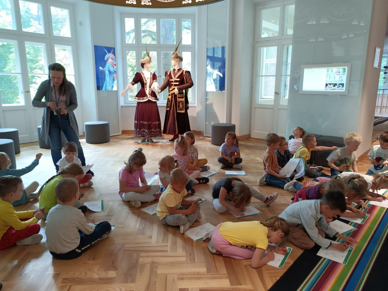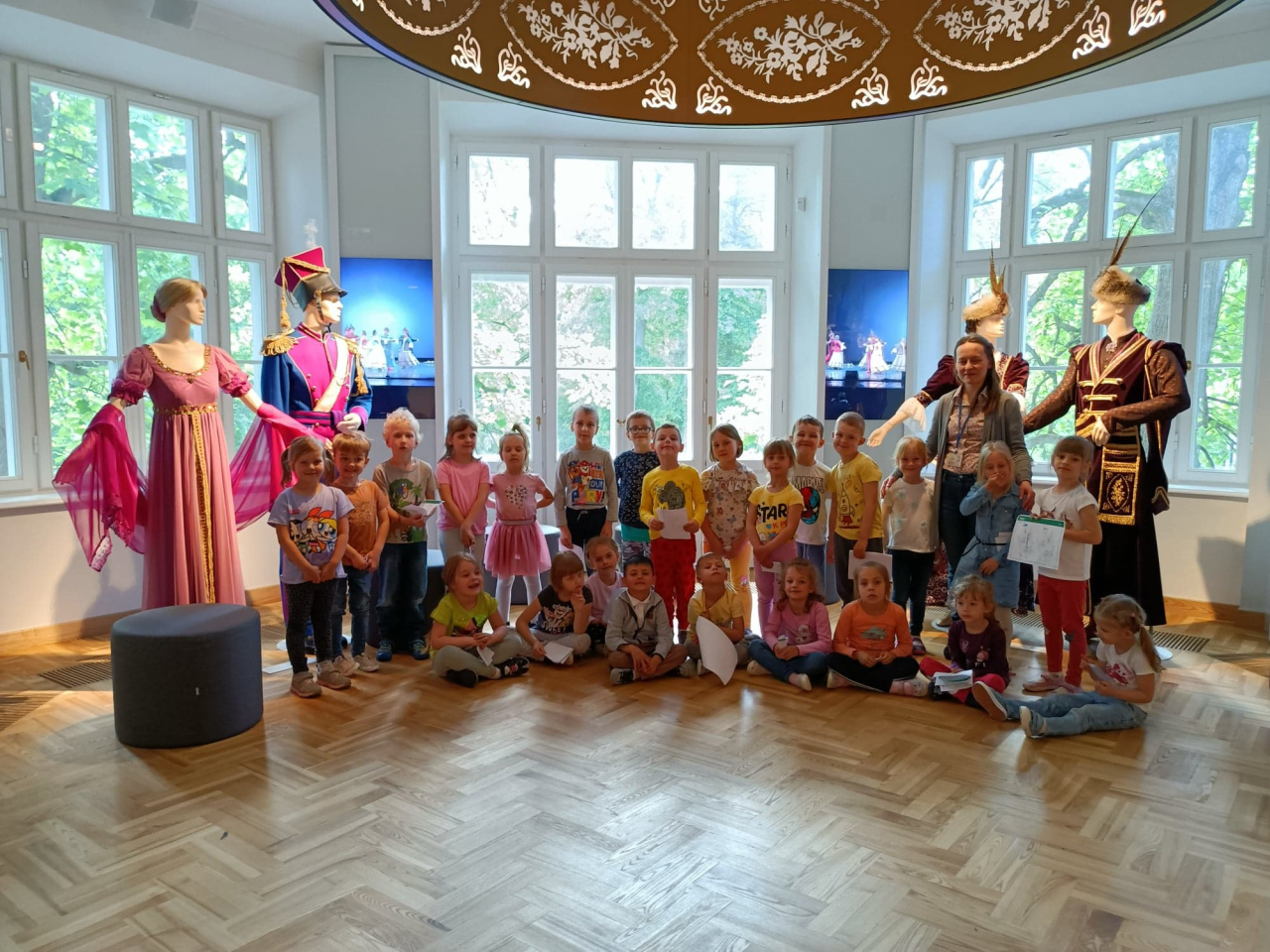 Następnie przedszkolaki wzięły udział w warsztatach tanecznych, podczas których nauczyły się podstawowych kroków tańców narodowych przy akompaniamencie fortepianu.