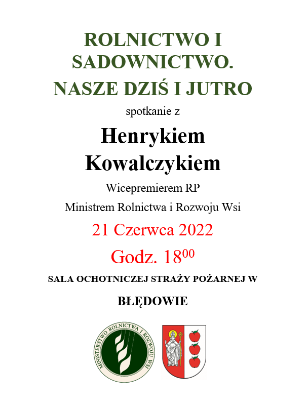 Spotkanie z Henrykiem Kowalczykiem Wicepremierem RP Ministrem Rolnictwa i Rozwoju Wsi w Błędowie