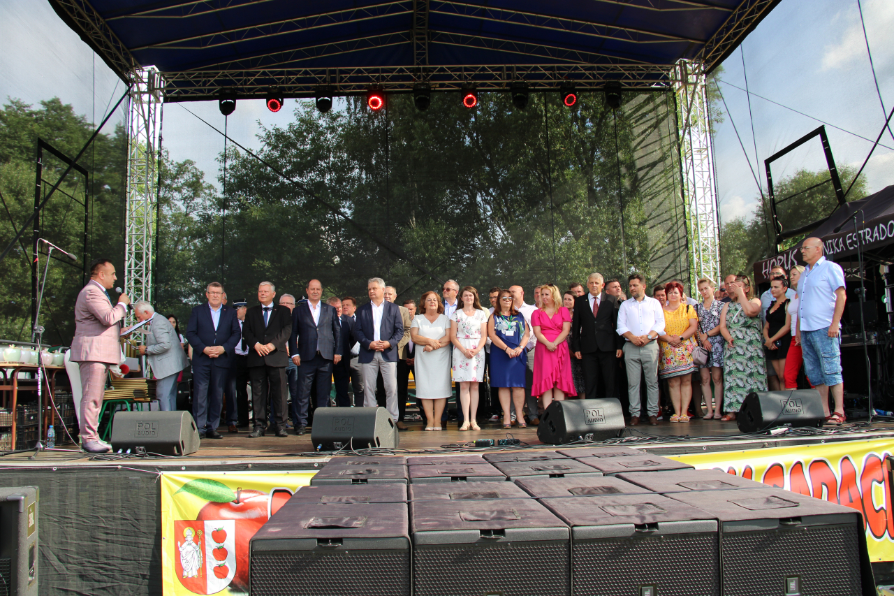 Wójt Gminy Błędów Mirosław Jakubczak uroczyście otworzył XX Piknik W Błędowskich Sadach oraz powitał licznie przybyłych gości: partnerską gminę ze Słowacji na czele ze Starostą Ondrejem Kleknerem, Senatora RP Stanisława Karczewskiego, posłów na Sejm RP: Marka Suskiego, Mirosława Maliszewskiego, Dariusza Bąka oraz Europosła Zbigniewa Kuźmiuka, radnego Sejmiku Województwa Mazowieckiego Leszka Przybytniaka, który jednocześnie reprezentował jak corocznie Pana Marszałka Województwa Mazowieckiego Adama Struzika, który objął patronat honorowy nad wydarzeniem. Obecny był również pan Jan Mazurkiewicz prezes grupy Enea Świerże Górne, który był partnerem naszego pikniku, zaszczycił również swoją obecnością prof. Janusz Wojdalski. Przywitani byli radni powiatu grójeckiego – Teresa Bednarska, Wojciech Wojtczak, Marzena Kołacz – Rosołowska, Wiceprzewodniczący Rady Powiatu Adam Balcerowicz. Gościł Pan Marcin Spiralski kierownik Instytutu Lotnictwa, dyrektor Zbigniew Sobieraj z Krajowego Ośrodka Wsparcia Rolnictwa, kierownik powiatowego biura ARiMR Anna Wieczorek, dyrektor KRUS Grójec Małgorzata Szymańczak, dyrektor Energetyki Grójec Arkadiusz Korczak, Joanna Brzezińska i dr n. med. Ryszard Roszczyk z Centrum Medycznego w Grójcu oraz Michał Błoński – Komendant Państwowej Straży Pożarnej w Grójcu.