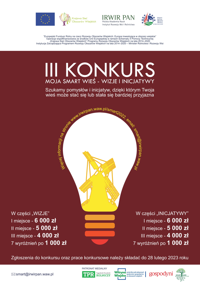 Instytut Rozwoju Wsi i Rolnictwa Polskiej Akademii Nauk (IRWiR PAN) zaprasza do udziału w III Konkursie "Moja smart wieś - Wizje i Inicjatywy".