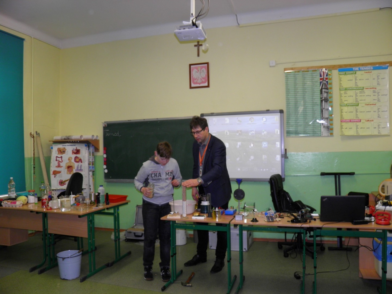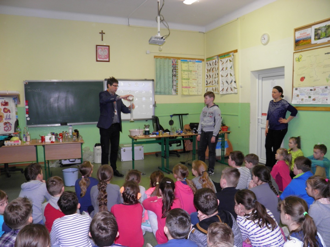 Dnia 02.03.2017r. w PSP w Lipiu gościł Pan Andrzej Wysmołek. Jest on polskim fizykiem, doktorem habilitowanym, który pracuje na Wydziale Fizyki Uniwersytetu Warszawskiego. Pan profesor zajmuje się także popularyzowaniem zagadnień związanych z fizyką i chemią wśród uczniów szkół podstawowych i gimnazjalnych. Właśnie w tym celu przyjechał do naszej szkoły. W bardzo interesujący sposób opowiadał o atomach, mieszaniu się substancji o różnej gęstości, napięciu powierzchniowym i innych ciekawych zjawiskach.  Podczas spotkania zostały przeprowadzone liczne eksperymenty i doświadczenia, które dzieci mogły nie tylko obserwować, ale też brać w nich udział. Niezwykle ciekawy sposób przekazywania wiedzy przez pana profesora sprawił, że ta niestandardowa lekcja fizyki spotkała się z dużym zainteresowaniem.