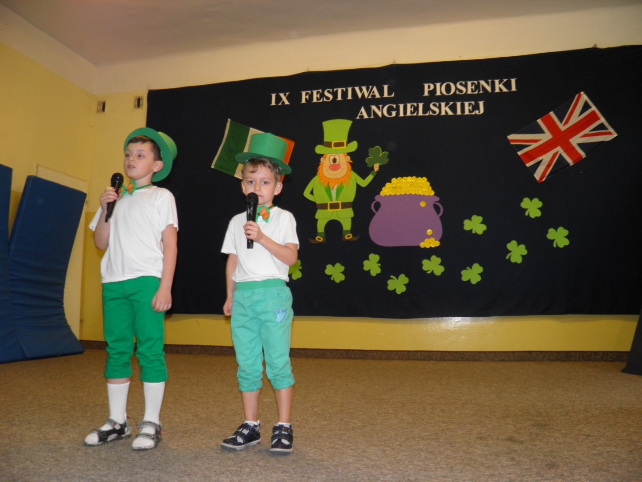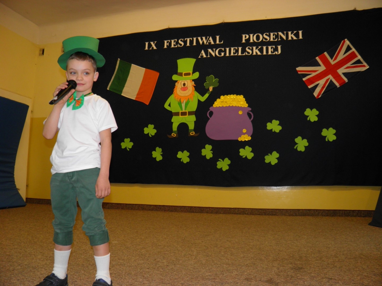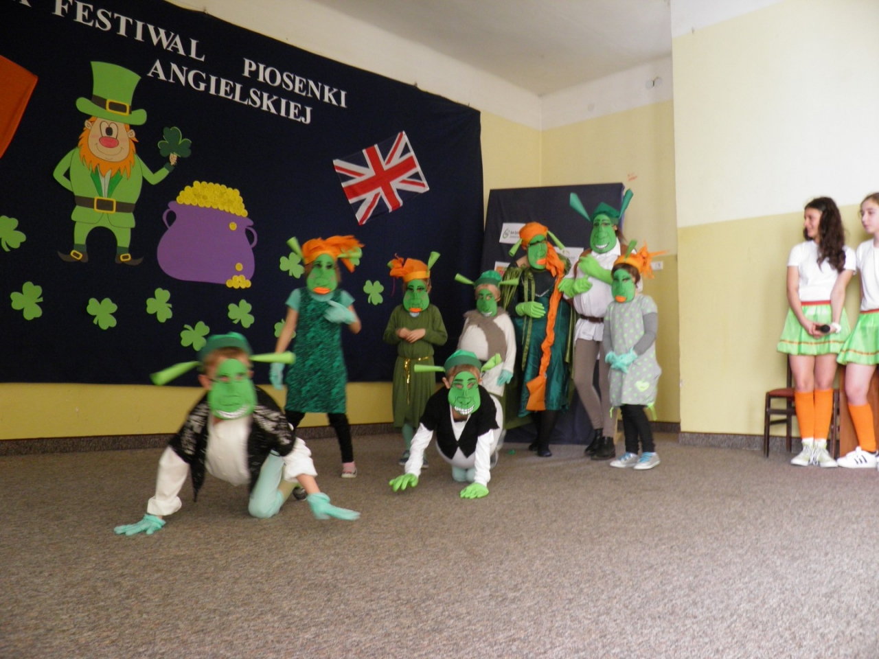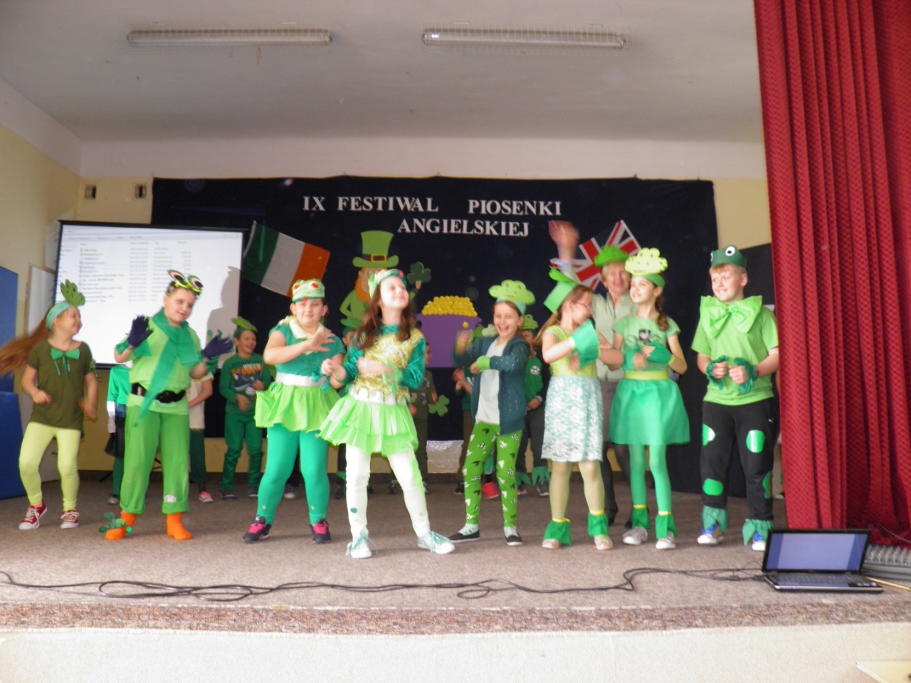 Podziękowania dla Pani Iwony Dudek i Pani Marleny Wąsek za pomoc  w przygotowaniu dekoracji. Dekoracji wykonanej w barwach Irlandii, ponieważ druga część festiwalu związana była z Dniem Św. Patryka, patrona Irlandii. Zadaniem każdej klasy, było przygotowanie strojów w barwach irlandzkich oraz zaprezentowanie się na forum całej społeczności szkolnej.  Z tej okazji odbył się drugi konkurs klasowy „Na najciekawsze przebranie”  dla 2 kategorii wiekowych.
