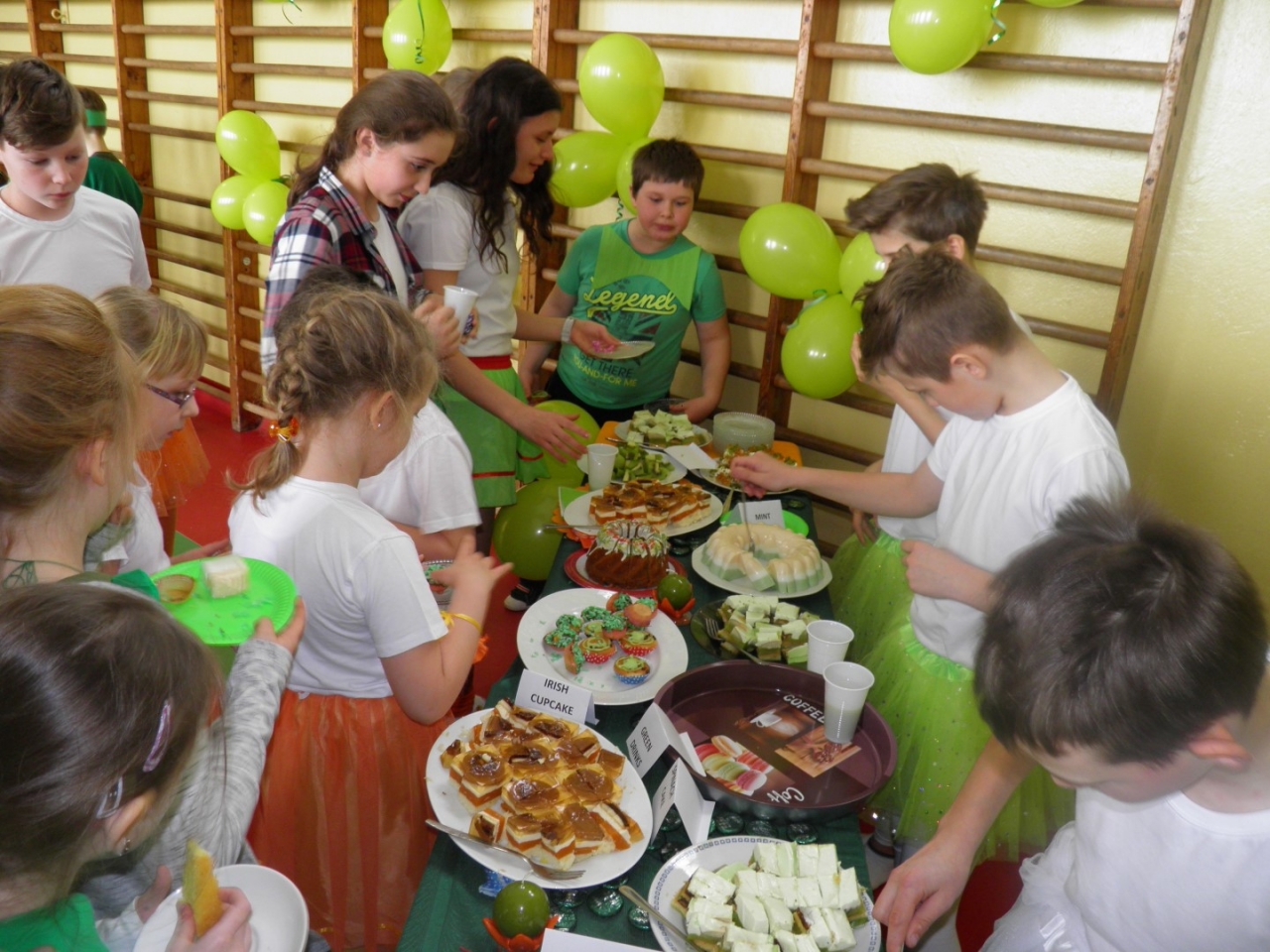 Po konkursowych emocjach przyszedł czas na smaczną i ciekawą przekąskę, na którą składały się przysmaki  skrzata Leprechauna  głównie w kolorze zielonym. Wszyscy uczestnicy mogli spróbować Irish drinks (soki w kolorze zielonym), Leprechaun’s cakes (ciasta Shrek i Mech), green jelly (zielona galaretka), a także green fruit (kiwi), czy też gloden ducats (złote dukaty).