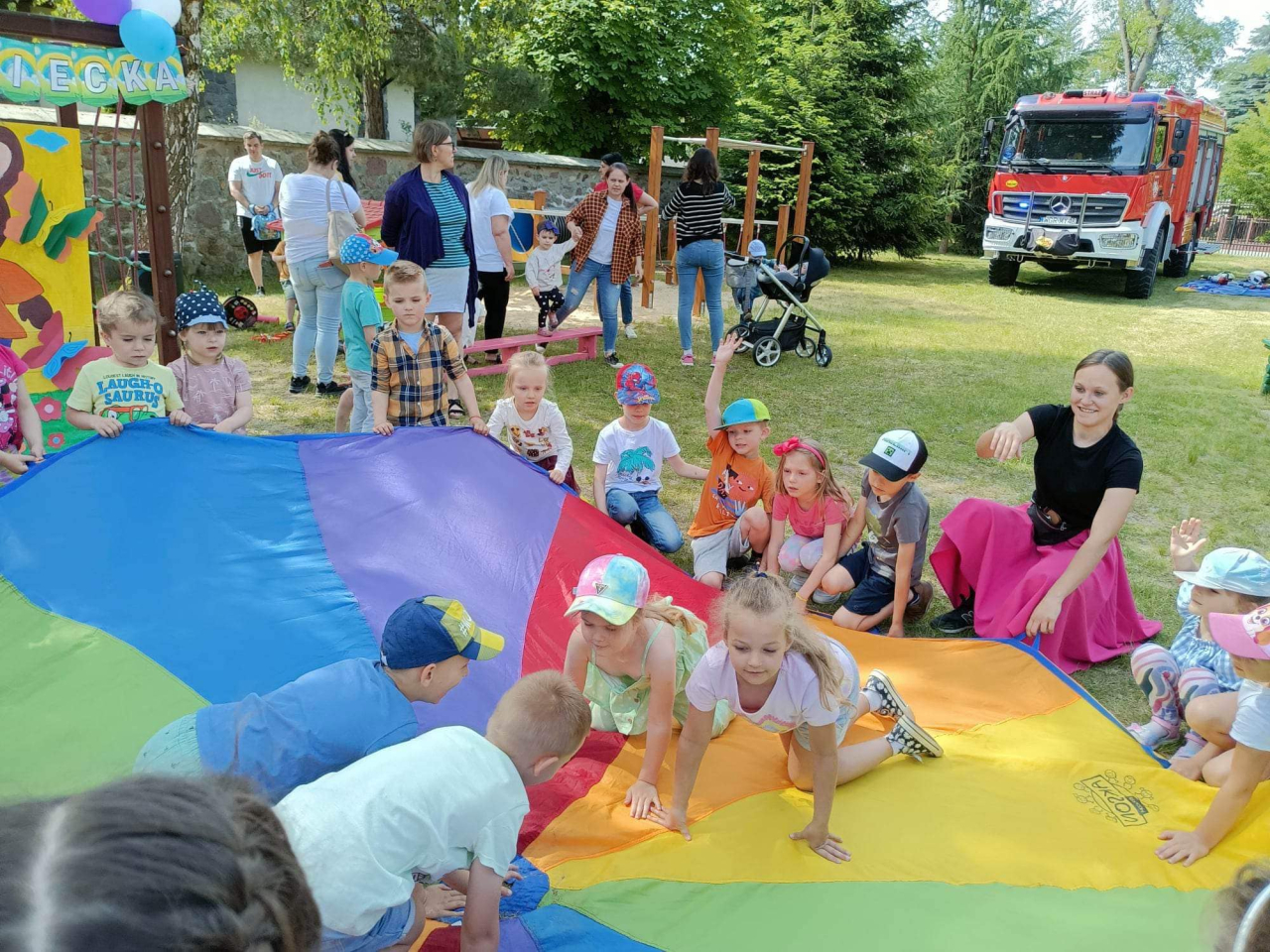 Dziękujemy serdecznie wszystkim Rodzicom zaangażowanym w przygotowanie imprezy, naszym dzielnym strażakom na czele z Łukaszem Dąbrowskim za poświęcony czas i bardzo interesujący oraz potrzebny instruktaż w zakresie bezpieczeństwa. Paniom animatorkom i personelowi przedszkola za przeprowadzenie imprezy. A wszystkim obecnym za wspaniałą zabawę.