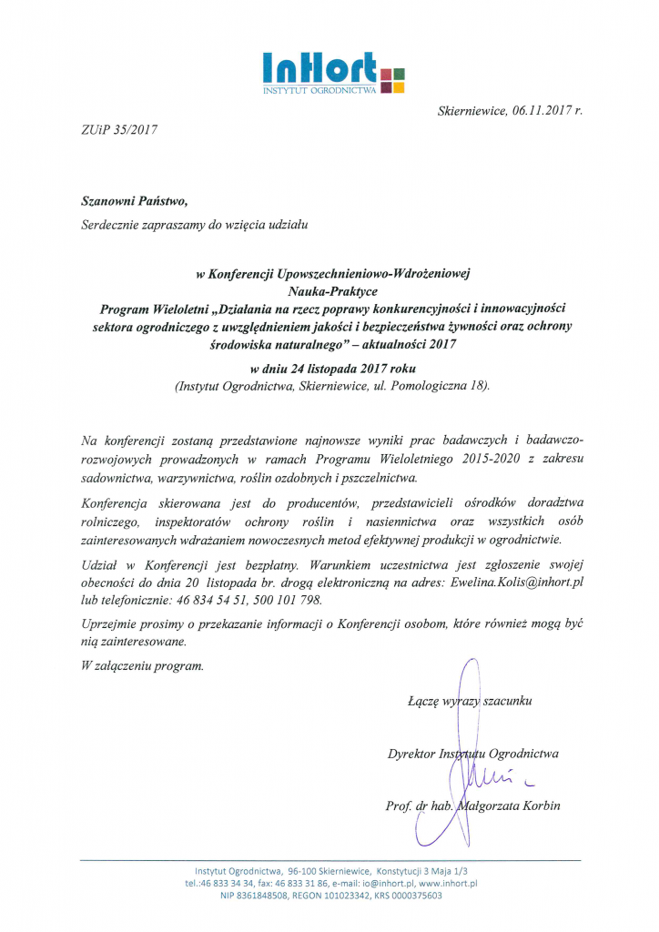 Instytut Ogrodnictwa organizuje Konferencję Upowszechnieniowo-Wdrożeniową Nauka-Praktyce