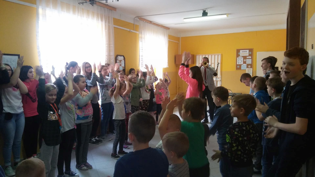 W dniu 06.02.2018 r. (wtorek) naszą szkołę odwiedziła filharmonia objazdowa z programem pt."Muzyka karnawałowa". Uczniowie mieli okazję poćwiczyć kroki taneczne tuż przed zabawą choinkową. Wszyscy chętnie uczestniczyli w zabawie.
