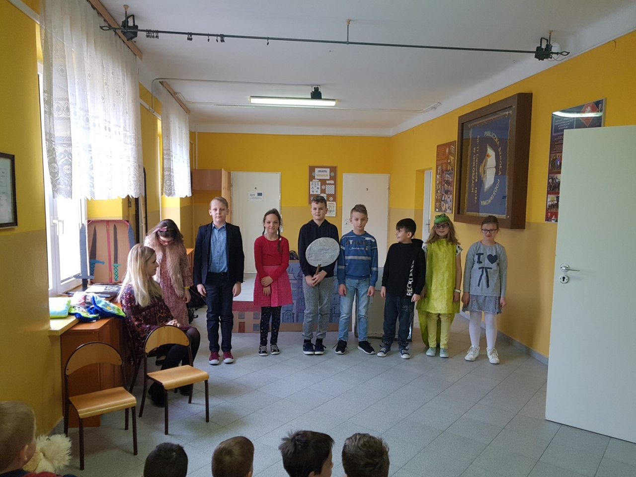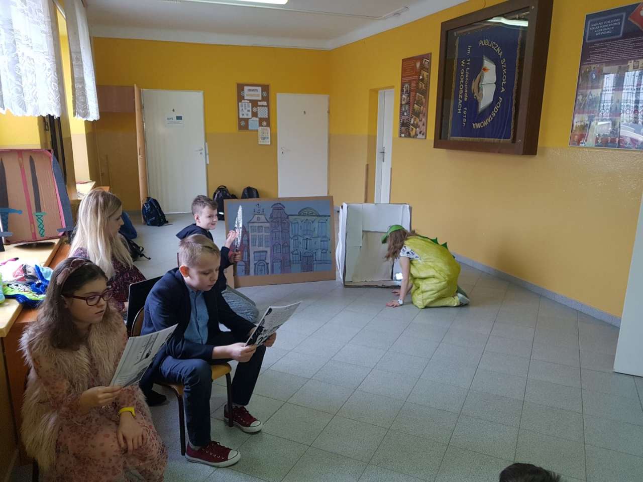 Dnia 19.02.2018r. w PSP w Gołoszach szkole odbyło się kolejne głośne czytanie w ramach akcji ''Czytająca szkoła''. Uczniowie klasy IV pod kierunkiem nauczycielki języka angielskiego p. Katarzyny Rylskiej przygotowali legendę pod tytułem „Bazyliszek” w wersji polsko - angielskiej. Scenografia oraz wspaniałe rekwizyty i stroje przygotowane przez uczniów i ich rodziców przeniosły nas do legendarnych czasów, co spodobało się wszystkim oglądającym naszych młodych aktorów. Obchodzimy w tym roku jubileusz 100-lecia odzyskania niepodległości przez Polskę, więc legendy i inne teksty kultury w wersji polsko – angielskiej będą wspaniałym sposobem na przypomnienie uczniom legendarnych początków i historii państwa polskiego, a także doskonalenia praktycznej umiejętności posługiwania się językiem angielskim.