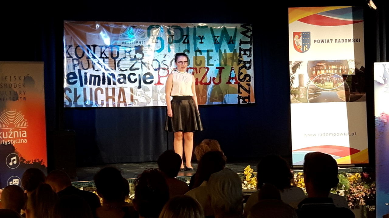 10 maja po etapach szkolnym i rejonowym Julia znalazła się wśród laureatów XXXV Małego Konkursu Recytatorskiego. W Amfiteatrze Kuźni Artystycznej  w Radomiu recytowała wiersze „Przyniosłaś dziś pamiętnik” Józefa Szczepańskiego oraz „Odnaleźć samego siebie” Tadeusza Różewicza. Gratulacje Julio.