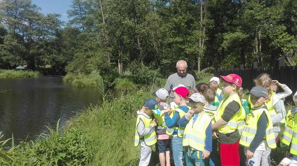W ramach realizacji rocznego tematu "Przedszkolaki żyją zgodnie z naturą, zorganizowaliśmy spotkanie nad stawem w Błędowie z Panem Pachockim- Prezesem Związku Wędkarzy. Dzieci zdobyły dużo wiadomości na temat okolicznych zbiorników wodnych, zwierząt i roślin  występujących w wodzie i nad wodą. Poruszone zostały również tematy związane z ekologią. Dzieci miały okazję poznać sprzęt wędkarski i zostały zachęcone do wędkowania.