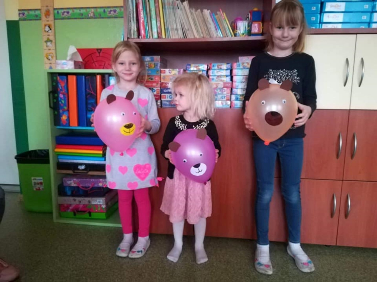 Wszystkie przedszkolaki wyrecytowały wiersz o tym jaki jest miś. Zaprezentowały swoje misie, opowiadały o nich, mówiły z jakich są bajek, poznały historię „Teddy’s Bear”, odgadywały zagadki, wspólnie tańczyły przy misiowych przebojach, robiły sobie zdjęcia w fotobudce oraz wykonały misiowe balony.