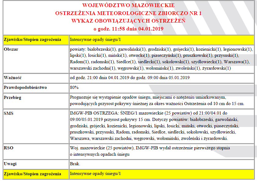 IMGW-PIB OSTRZEGA: Intensywne opady śniegu
