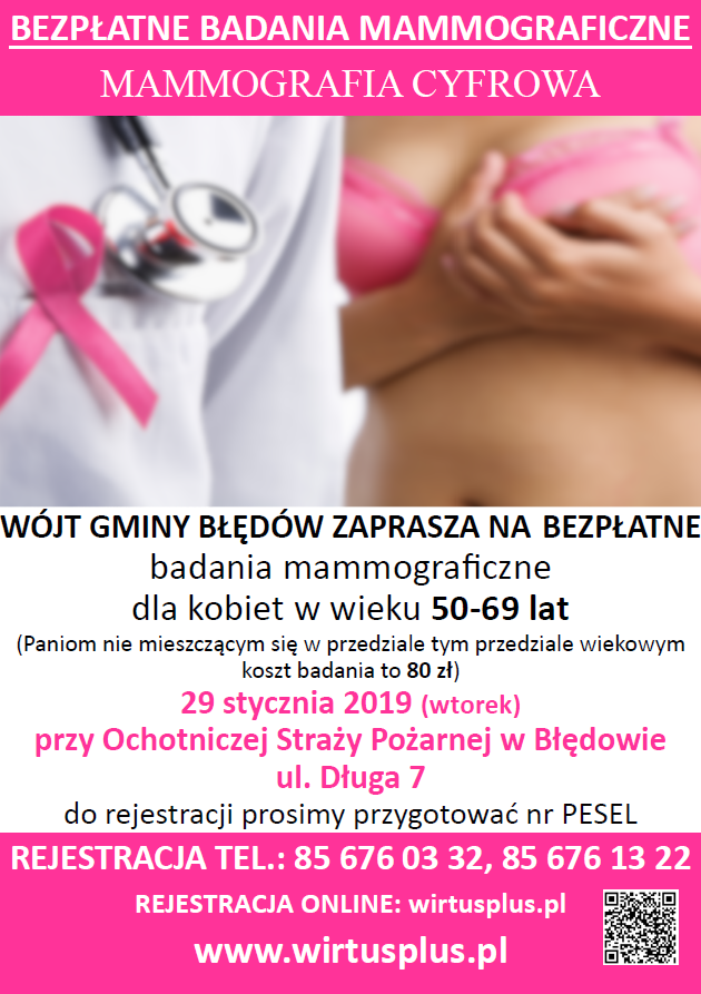 Wójt Gminy Błędów zaprasza na bezpłatne badania mammograficzne