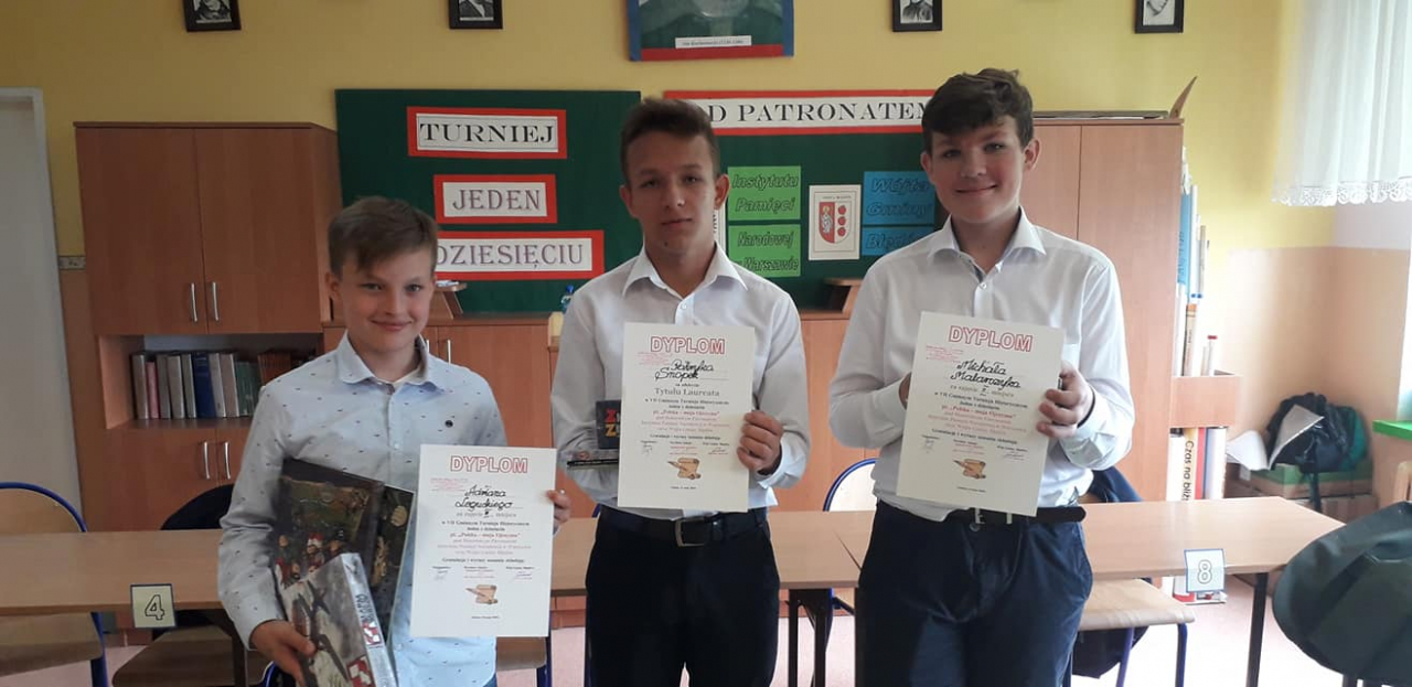 Tytuł Laureata zdobył uczeń kl. VIII PSP w Gołoszach – Patryk Snopek. Drugie miejsce zajął Michał Malarczyk – uczeń z tej samej szkoły. Obu przygotowywał do turnieju Emilian Matysiak. Na trzecim miejscu uplasował się Adrian Legucki – uczeń z PSP w Błędowie, którego opiekunem była Sylwia Woszczyk. Zwycięzcom i wszystkim uczestnikom serdecznie gratulujemy.