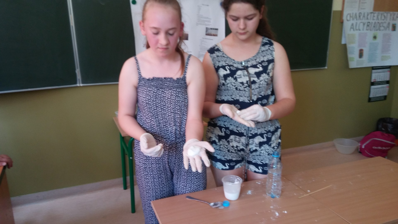 Uczniowie klasy VI b: Łucja B., Grzegorz K., Patrycja L., Kinga B., Wiktoria K., Martyna S., Weronika K., Ewelina Z., Agata O. i Karol S. również zaprezentowali w swoich projektach wiedzę o zależnościach pomiędzy wodą i innymi substancjami. Były to fascynujące pokazy i doświadczenia: „Chemiczne jojo”, „Skaczące jajko”, „Kolorowe mleko”, „Ciecz nienewtonowska”, „Dwutlenek węgla a ogień”. Uczniowie do swoich projektów dołączyli też prezentacje multimedialne.