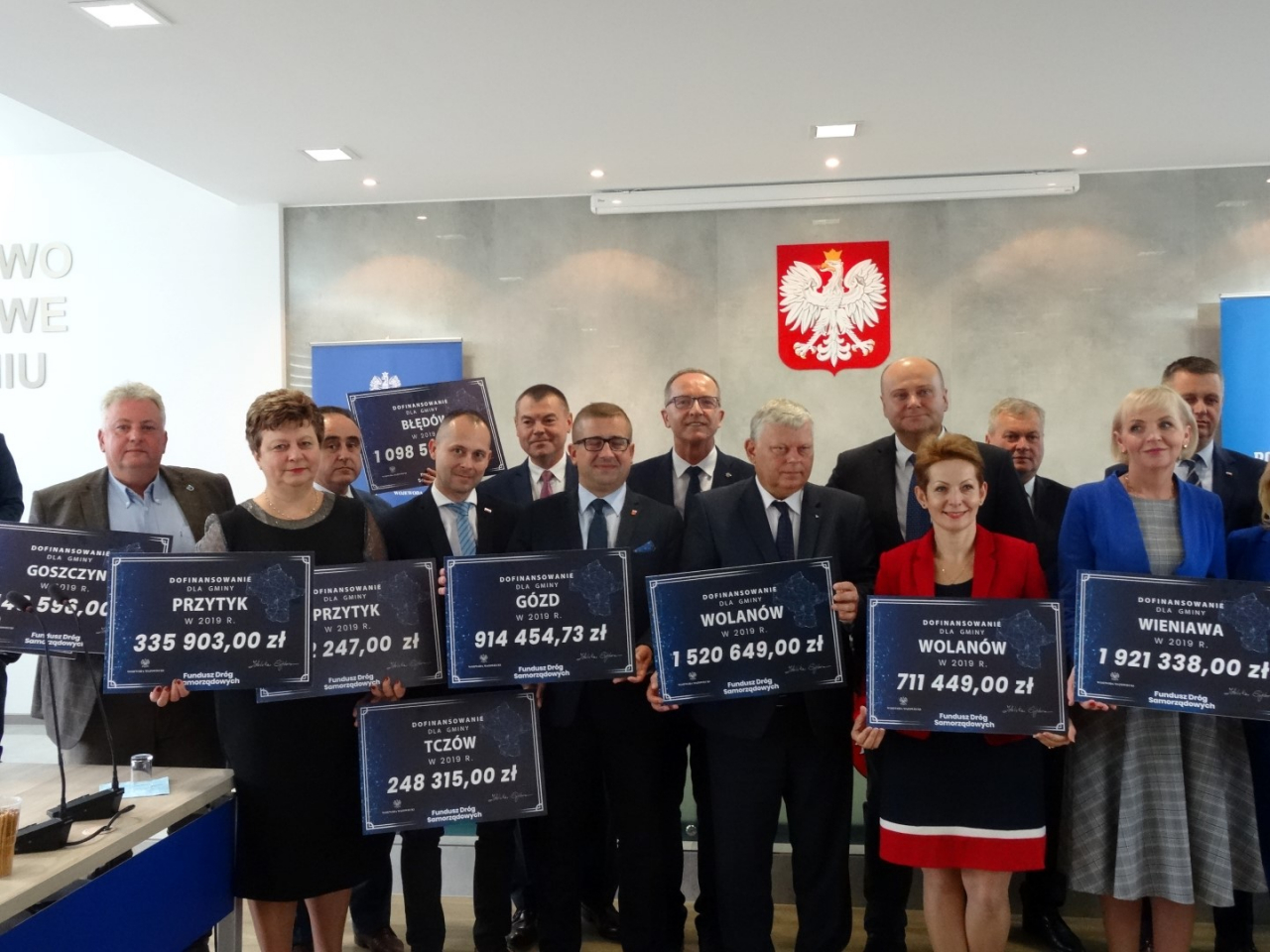 W dniu dzisiejszym Wójt Gminy Mirosław Jakubczak uczestniczył w uroczystości wręczenia symbolicznych czeków na dofinansowanie realizacji zadań drogowych w ramach Funduszu Dróg Samorządowych.