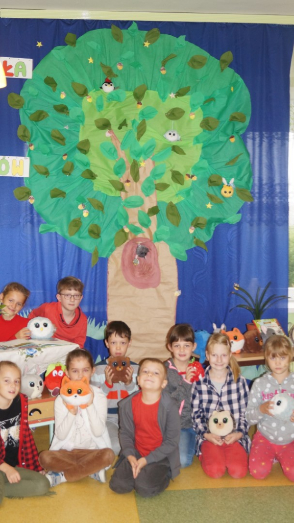 Dn. 27.09.2019 w naszej szkole odbyła się inauguracja głośnego czytania. Była to okazja do zaproszenia najmłodszych uczniów klas 0.I, II .wraz z wychowawcami do podróży  w świat literatury dziecięcej z okazji Ogólnopolskiego Dnia Głośnego Czytania. Uczennica klasy czwartej -A. Czyżewska przeczytała koleżankom i kolegom rozdział pt: ”Drzewa”  z książki R. Piątkowskiej „  Gangu Słodziaków ”.  Scenografię – „ Nasza szkoła czyta Gang   Słodziaków  wykonała - H. Wojtecka.