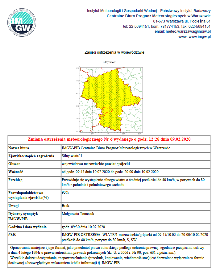 Ostrzeżenie meteorologiczne nr 2- silny wiatr